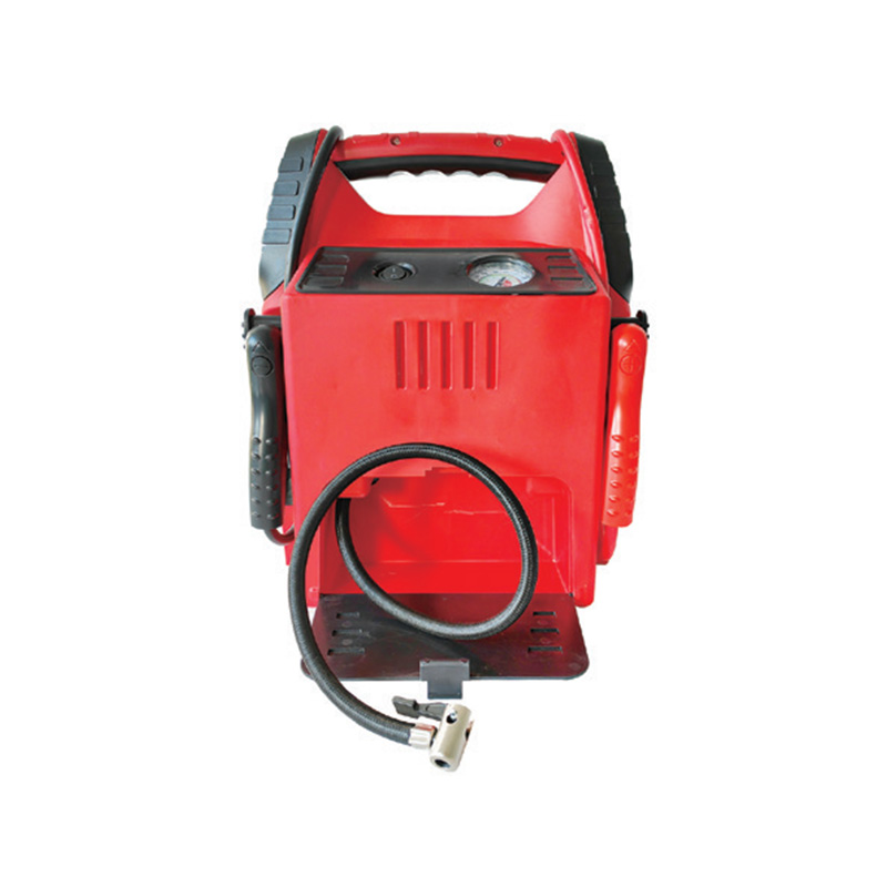 Ovaj proizvod ima ugrađeni zračni kompresor, koji je prikladan za brzo napuhavanje, zadovoljavajući različite potrebe napuhavanja kao što su automobilske gume i sportska oprema, što korisnicima olakšava rješavanje problema s gumama tijekom putovanja. Bogat broj LED radnih svjetala poboljšava učinak osvjetljenja, pružajući jasno vidljivo radno okruženje noću ili kada nema dovoljno svjetla, pomažući korisnicima da završe hitne operacije. Dizajn DC izlazne utičnice i USB sučelja zadovoljava potrebe punjenja različite električne opreme i poboljšava ukupnu praktičnost. Indikator obrnutog polariteta može podsjetiti korisnika da ispravno spoji napajanje i smanji rizik od kvara uzrokovanog obrnutim spajanjem. LED indikator statusa baterije omogućuje korisnicima da budu u tijeku sa statusom baterije u bilo kojem trenutku, što olakšava punjenje i održavanje na vrijeme.
