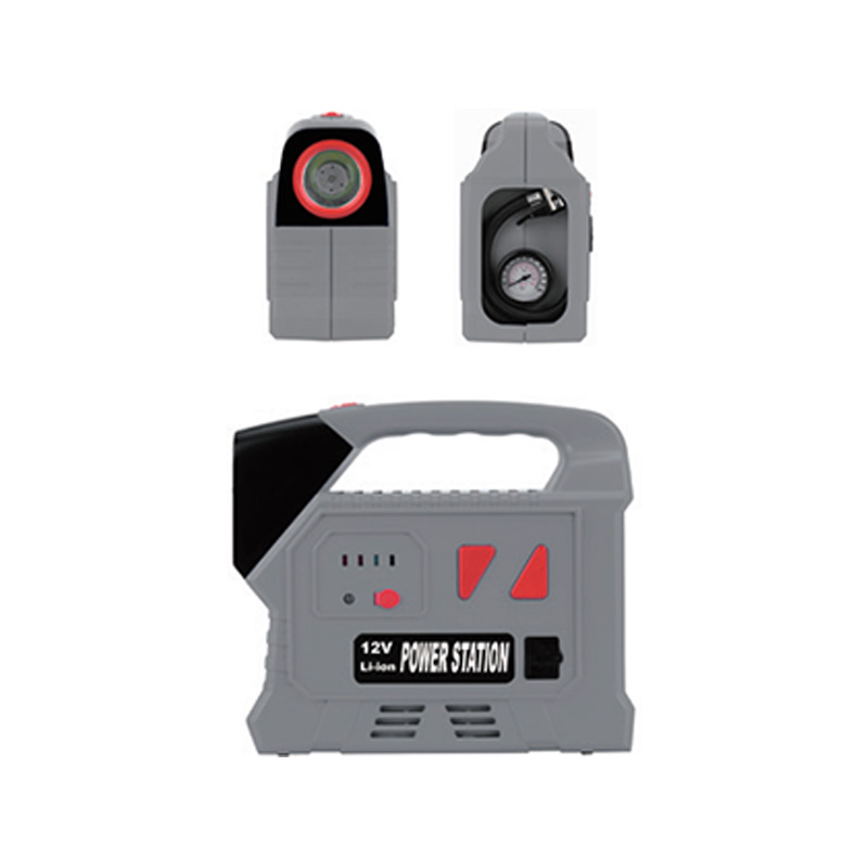 Zračni kompresor ima snažan kapacitet napuhavanja i može zadovoljiti potrebe za gumama i drugom opremom za napuhavanje. Pogodan je za različite scenarije, bilo da se radi o avanturi na otvorenom ili svakodnevnoj uporabi, može pružiti pravovremenu pomoć. LED dio radnog svjetla sastavljen je od više kuglica svjetiljke, s ujednačenim i dugotrajnim osvjetljenjem, pružajući dovoljan izvor svjetlosti za noćni rad ili rasvjetu, a s funkcijom svjetiljke od jednog vata dodatno povećava raznolikost i praktičnost osvjetljenja. Dodavanje USB sučelja i sučelja upaljača za cigarete povećava mogućnost proširenja uređaja. Korisnici mogu jednostavno puniti mobilne telefone, tablete ili druge elektroničke uređaje kako bi zadržali napajanje komunikacijskih i zabavnih uređaja. Dizajn proizvoda usmjeren je na praćenje stanja baterije u stvarnom vremenu. LED indikator jasno prikazuje preostalu snagu, omogućujući korisnicima da na vrijeme razumiju status uređaja i izbjegnu iznenadne nestanke struje. Odgovarajući AC/DC adapter za punjenje osigurava fleksibilnost više metoda punjenja kako bi se zadovoljile potrebe punjenja u različitim okruženjima.